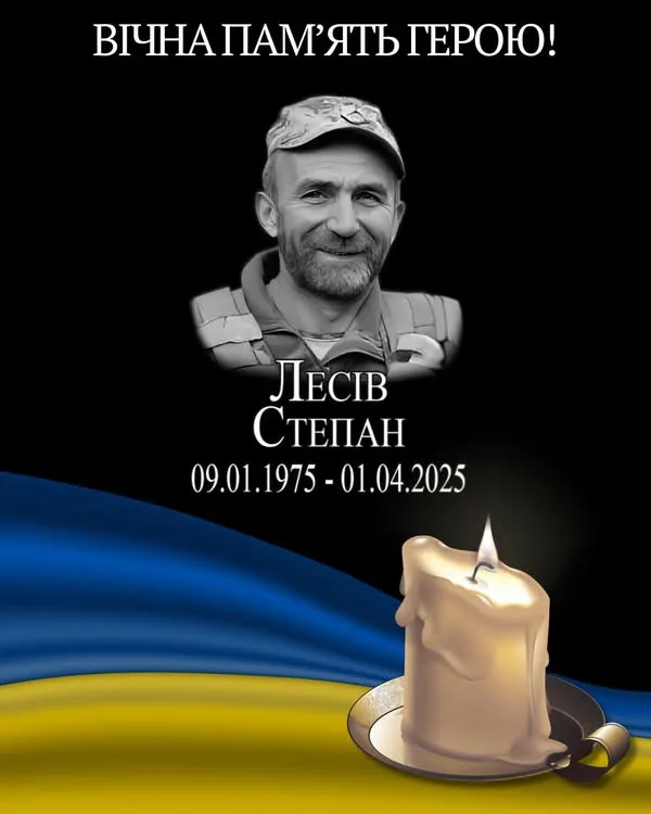Сьогодні минає рік з дня, коли Лесів Степан Богданович (09.01.1975 – 01.04.2025) відійшов у вічність, боронячи Україну. Рік болю, втрати та світлої пам’яті…