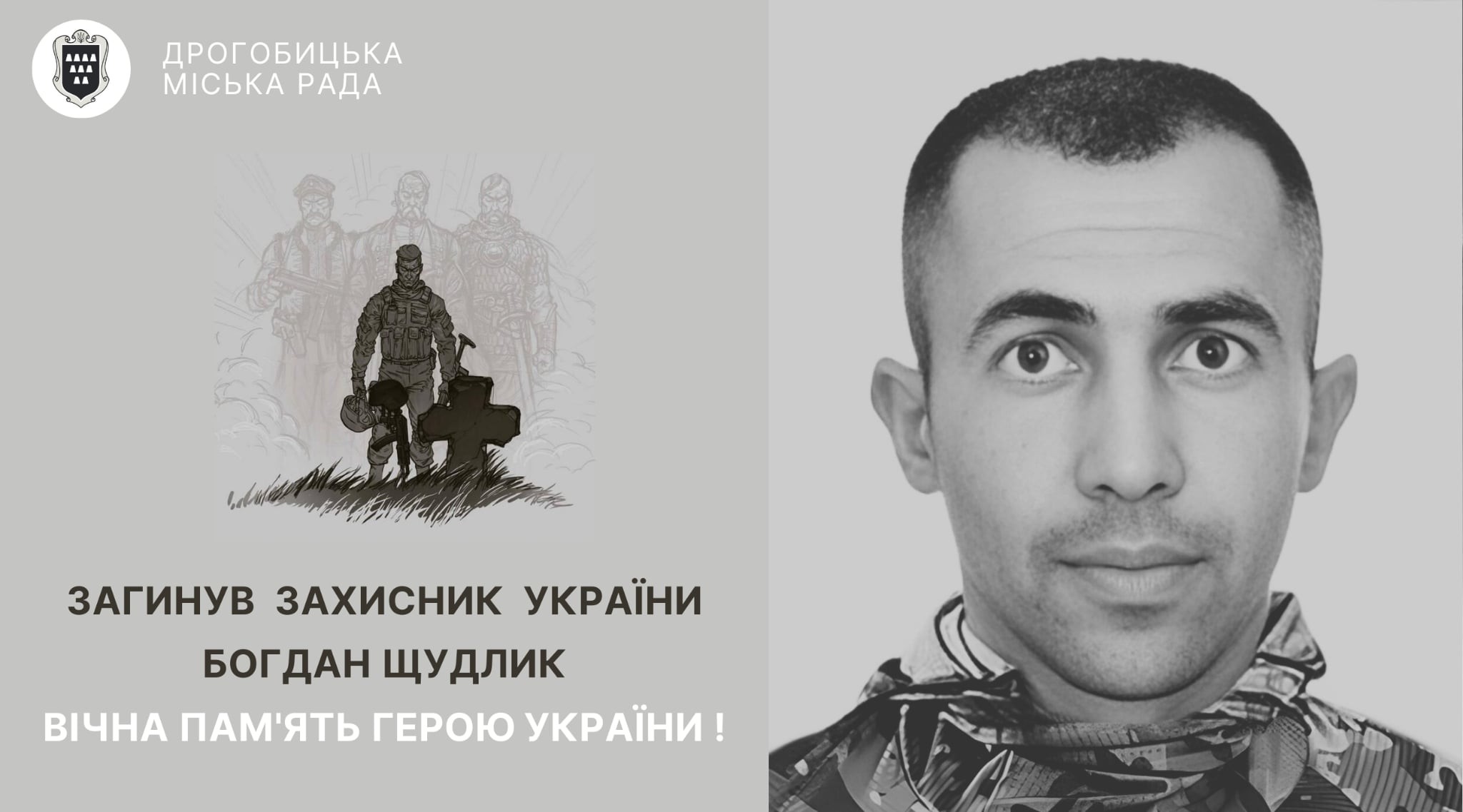 Дрогобицька міська рада висловлює щирі співчуття сім’ї Героя — Богдана Щудлика. Зустріч траурного кортежу із тілом полеглого воїна відбудеться завтра о 13:00 на перехресті Героїв. **Чин похорону** відбудеться у неділю о 14:00 у храмі Преображення Господнього.