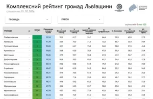 Оновлено рейтинг громад Львівщини: лідери станом на лютий 2026