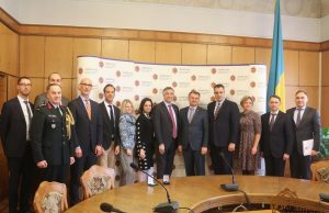Голова Львівської обласної ради Олександр Ганущин і голова Львівської ОДА Олег Синютка під час зустрічі з делегацією Посольства Канади на чолі з Надзвичайним і...