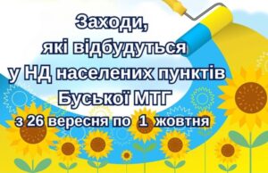 У Народних домах Буської громади відбудеться низка заходів, присвячених пам'ятним датам. З 26 вересня по 1 жовтня 2025 року у філіях Буського міського народного...