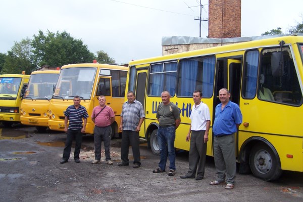 Виступаючи, керівник відділу освіти, молоді та спорту Богдан Глуховецький зауважив, що на балансі відділу освіти є 11 автобусів, включаючи і старенький експонат, якому 22 роки і якого вже витіснили нові "Школярики". Щороку вони використовують 55 тонн дизпалива, тобто лише на пальне витрачають півмільйона гривень. Тому здебільшого ремонт шкільних автобусів водії (на знімку внизу) проводять своїми силами.