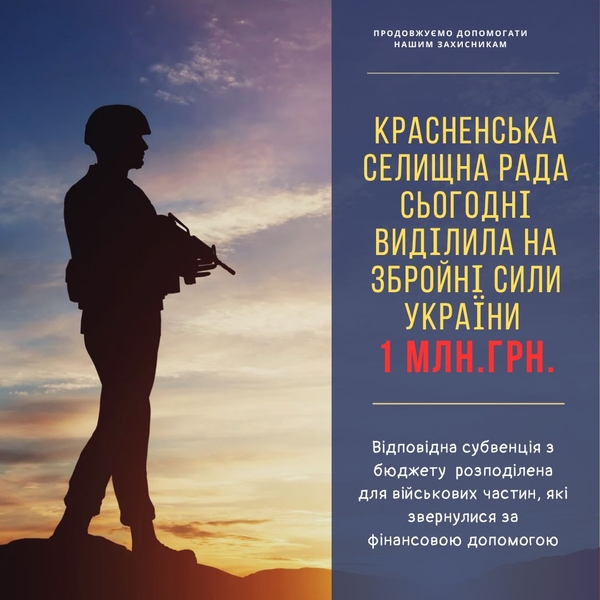 На черговій сесії Красненської селищної ради депутати вирішили внести зміни до селищного бюджету, що передбачають додаткове фінансування для ЗСУ. Згідно з листами військових частин та у межах реалізації відповідних цільових програм, на підтримку армії спрямовано ще 1 мільйон гривень.