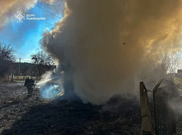 Пожежа сухостою на Яворівщині знищила дерев’яну будівлю