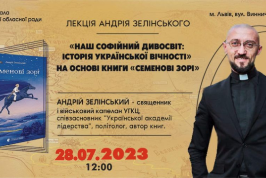 Львівська обласна рада запрошує на лекцію отця Андрія Зелінського «Наш Софійний Дивосвіт: Історія української вічності» на основі книги «Семенові...