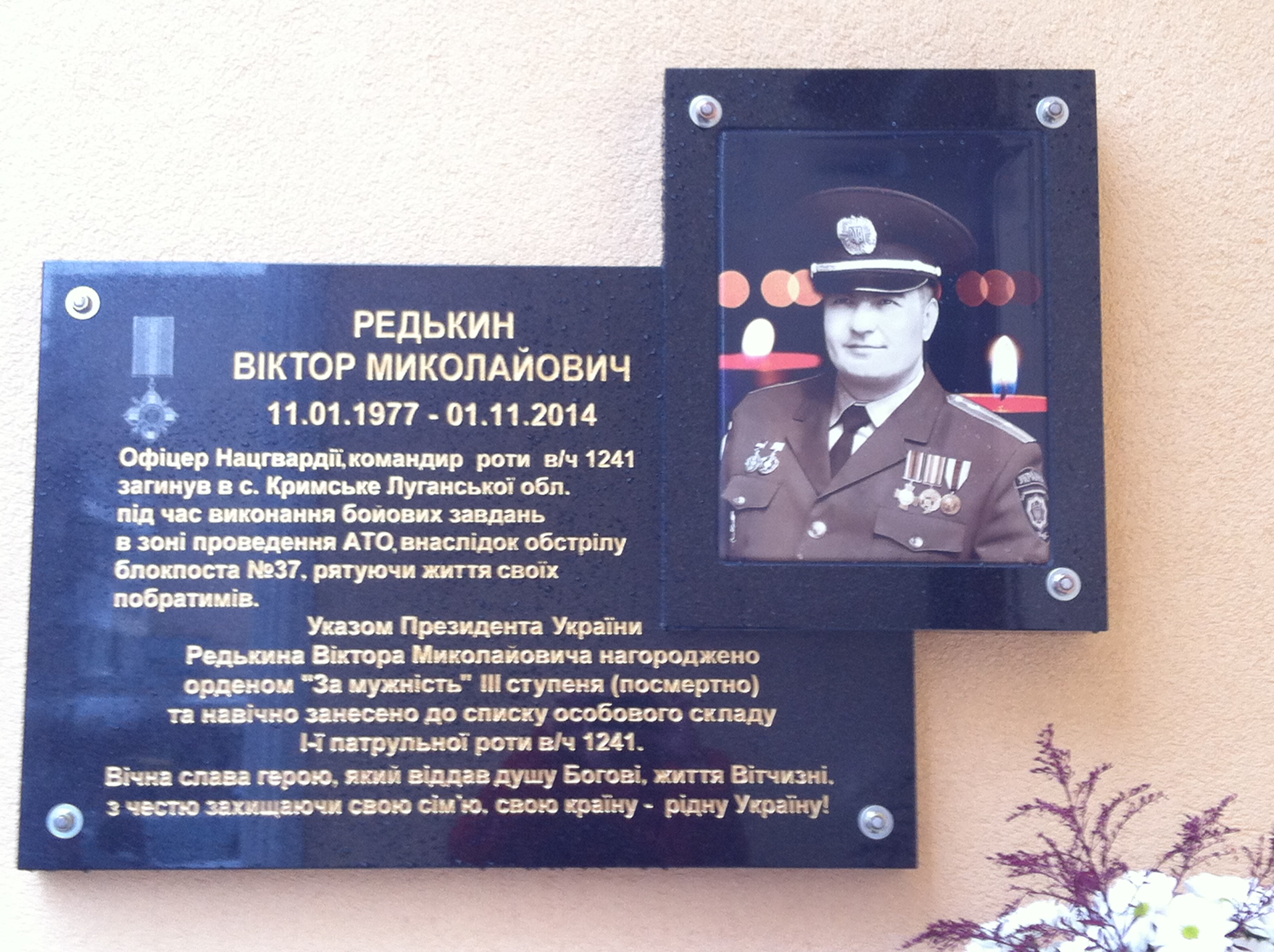Сьогодні у Чернівцях відкрили пам’ятну дошку загиблому на війні Герою Віктору Редькину. Пам’ятну дошку встановили на фасаді будинку, де проживав Віктор (провулок Ентузіастів, 12). Пом’янути Героя прийшли побратими-нацгвардійці, друзі, родини загиблих чернівчан, керівники міської та обласної влади.