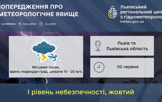 У Львівській області завтра прогнозують невеликий дощ, а подекуди град