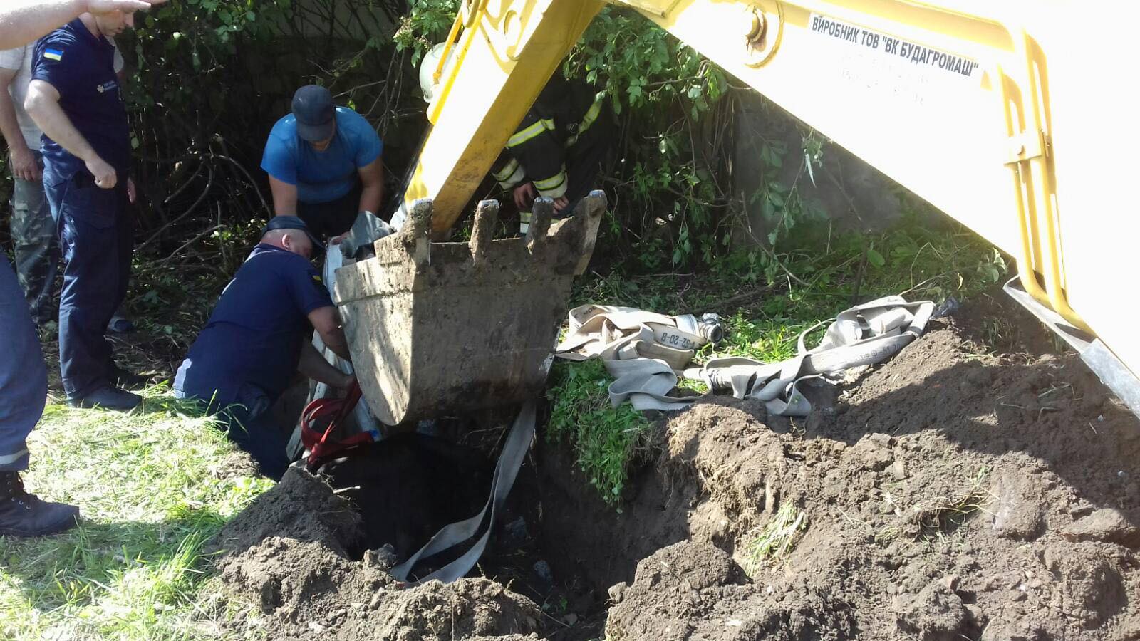Прибувши на місце події надзвичайники негайно приступили до порятунку тварини. Для того, щоб дістати тварину довелося підкопали яму і витягнути одне кільце. Після чого пожежно-рятувальним відділенням та місцевими мешканцями за допомогою шанцевого інструменту, пожежних рукавів та екскаватора тварину було витягнуто на поверхню та передано власникам.