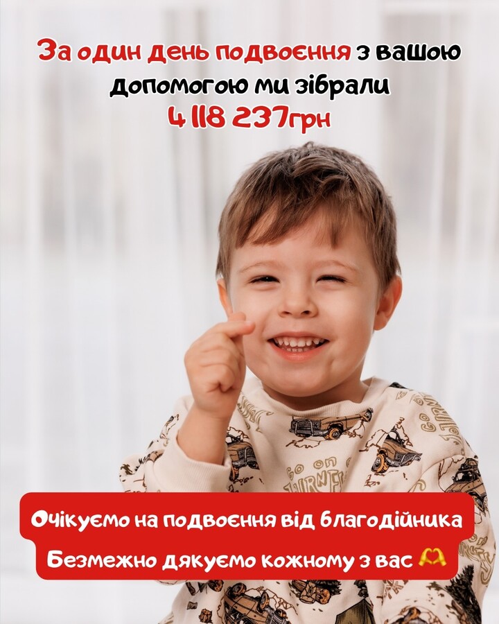 У той самий день вдалося зібрати понад 4 мільйони гривень завдяки підтримці небайдужих людей та благодійника, який погодився подвоїти внески.