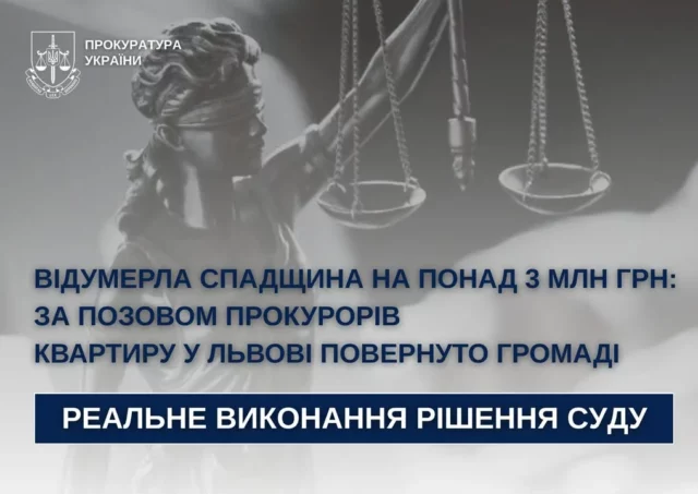 Прокурори Франківської окружної прокуратури міста Львова забезпечили виконання судового рішення про визнання квартири відумерлою спадщиною та передачу її у власність територіальної громади.