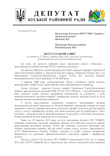 Після завершення сесії райради депутат Сергій Бондаренко, о.Юрій Годісь та журналіст Буського порталу виїхали до районного відділку міліції і прокуратури, де Сергій Бондаренко зареєстрував свій депутатський запит (текст запиту читайте нижче).