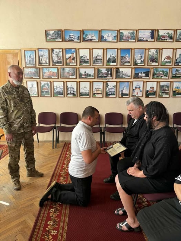 Нагороди батькові та матері Героя, Миколі Петровичу та Ользі Михайлівні, передали командири та бійці штурмового полку «Сафарі». Після цього правоохоронці разом з родичами поклали квіти та запалили лампадки на могилі Героя, який похоронений у рідному місті Турці.