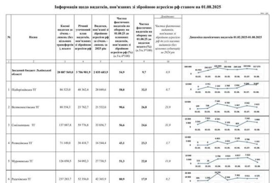 Львівщина спрямувала 2,04 млрд грн на оборону за 7 місяців