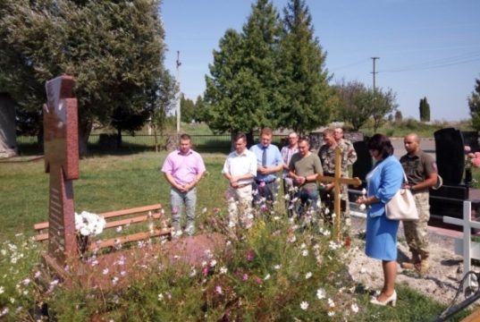 Участники ООС (АТО) и руководители района возложили цветы к могиле защитника Украины Петра Бойко