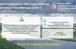 (Українська) Попередження про гідрологічне явище у Львівській і Волинській областях