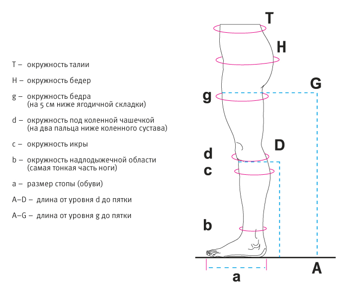 Таблицы размеров отличаются в зависимости от изготовителя, поэтому консультация с врачом является обязательным условием выбора подходящих чулок от варикоза.