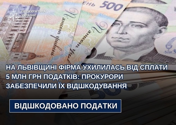 На Львівщині фірма ухилилась від сплати податків на суму понад 5 млн грн, але прокурори забезпечили їх відшкодування.