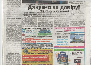 В останньому№51 от 11 декабря 2015 опровержения газета "Воля народа" так и не опубликовала. Поэтому, по просьбе начальника ЦПС №6 Романа Чипак, мы публикуем опровержение, которое должно по законодательство напечатать районный журнал (кажется, для редакции газеты законы не писаны).