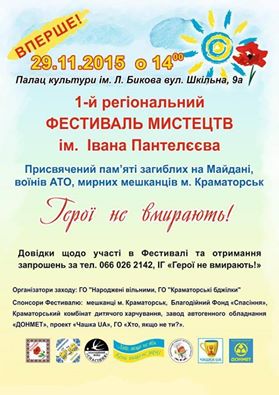В городе Краматорске Донецкой области 29 ноября состоится первый фестиваль искусств имени Ивана Пантелеева, названный в честь краматорского бойца, погибшего в зоне АТО.
