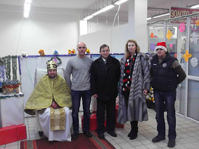 Именно в помещении местного супермаркета «Рукавичка» Буск, которое предоставил директор Торгово-производственной компании «Львовхолод» Богдан Козак, расположилась резиденция Святого Николая. Заходя в магазин замечаешь кучку людей, то своеобразная очередь — к Святому Николаю. Родители фотографируют своих детей рядом с ним и его помощниками. И сами радости делают себе с ними «Селфи», на память. Святой Николай (роль исполняет Николай Синькевич) сидит на кресле по центру комнаты и выслушивает детей. А рядом с ним — елка с подарками, сладости и резки.
