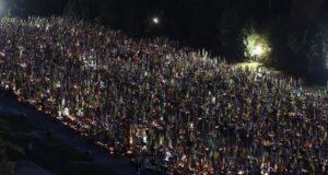 В знак памяти невинных жертв прошла акция «Зажги свечу героям!». Воспаленные огоньки в руках школьников символизировали нашу скорбь и память о потерянных жизнях соотечественников.