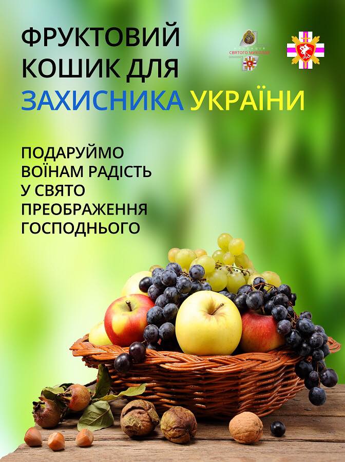 К празднику Преображения Господня в гарнизонного храма святых апостолов Петра и Павла формировать фруктовые корзины для украинских защитников. Об этом сообщил настоятель в гарнизонного храма святых апостолов Петра и Павла Степан Сус на своей странице в Facebook.