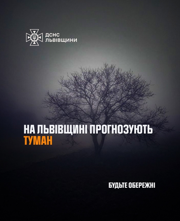 21 жовтня вночі та вранці у Львові очікується туман з видимістю від 200 до 500 метрів. Це може створити небезпеку на дорогах. Водіям рекомендується знижувати швидкість, дотримуватися безпечної дистанції та вмикати ближнє світло або протитуманні фари. «Будьте уважними, переходьте дорогу тільки у дозволених місцях та носіть світловідбивні елементи,» — радять пішоходам.