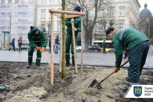 На площади перед Оперным театром во Львове высадили 8 платанов
