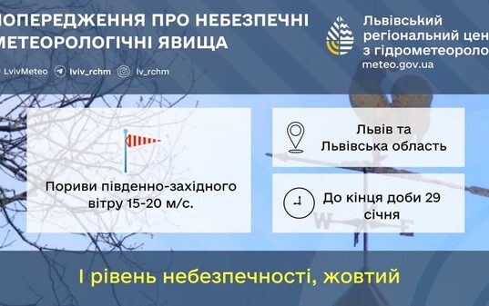 Попередження про пориви вітру в Україні з південного заходу 29 січня
