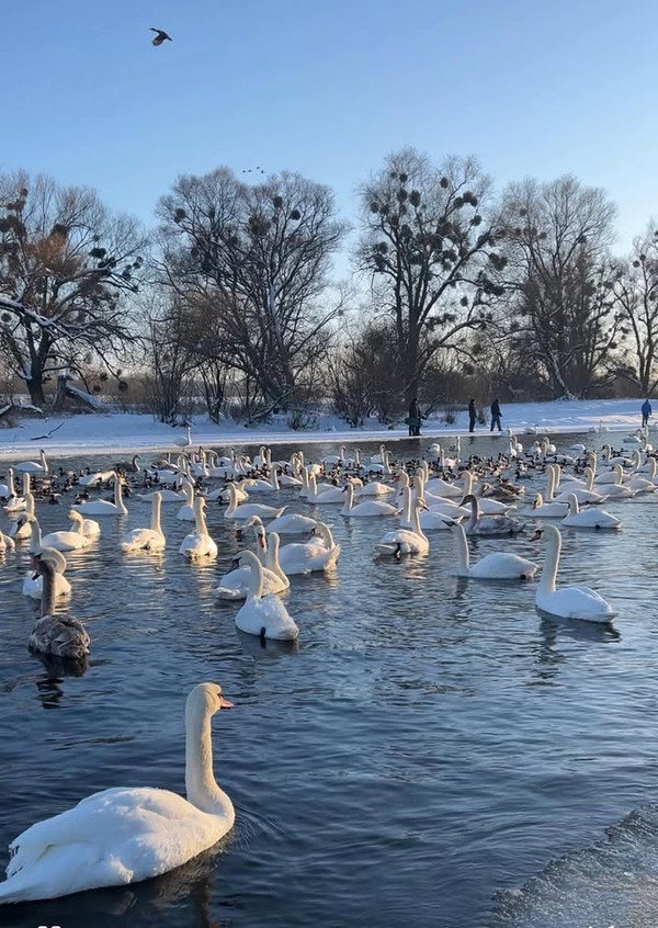 Щоб безпечно годувати лебедів, «категорично заборонено виходити на лід». Кидайте корм у воду або на край берега. Хлібобулочні вироби викликають важкі хвороби у птахів, тому використовуйте овес, пшеницю, ячмінь або дрібно нарізані овочі.