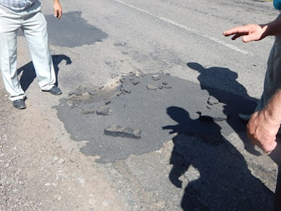 Как отмечает депутат, дорожные работы выполняются некачественно. В этом он мог самостоятельно убедиться. Приехав на место, где ведутся работы, он легко отодрал руками две некачественно починенные асфальтом ямы (на фото). Поэтому о таком халтурно выполнения работ и безопасности движения, депутат еще на предыдущей сессии райсовета сообщил председатель Буского РГА Петра Мороза. Но, как отмечает Василий Кашуба, никакой реакции на эти поднятые вопросы не было, а значит началось сведение счетов с депутатом (депутаты райсовета пытались сократить отдел защиты прав потребителей, руководителем которого является Василий Кашуба). Поэтому пришлось депутату лично пожаловаться председателю Львовской ОГА Олегу Синютке. Реакция не задержался.