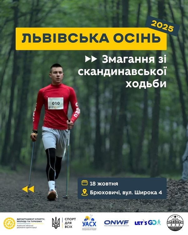 18 жовтня у селі Брюховичі стартує захід «Львівська осінь», організований Львівським обласним центром фізичного здоров’я населення «Спорт для всіх» та Громадською організацією «Українська асоціація скандинавської ходьби» за підтримки міжнародної федерації скандинавської ходьби ONWF. Їх об’єднує спільна мета — розвивати масовий спорт, пропагувати здоровий спосіб життя і зробити скандинавську ходьбу доступною та популярною серед людей різного віку й рівня підготовки.