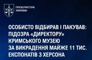 Директор кримського музею підозрюється у викраденні майже 11 тис. експонатів з Херсона, що є власністю України.